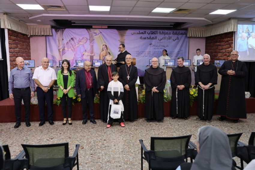 وصل بيان جاء فيه: "احتفل هذا الأسبوع في مركز القديس انطون في الناصرة، بانتهاء المرحلة الأولى من المسابقة الثامنة لمعرفة الكتاب المقدس في الأراضي المقدسة والتي تنظمها مؤسسة مسابقة الكتاب المقدس بالتعاون مع نادي عائلة البشارة للاتين، وتحت رعاية الأبرشيات المسيحية الغربية والشرقية في البلاد، البعثة البابوية، مجلس الكنائس العالمي ودار الكتاب المقدس في الناصرة".